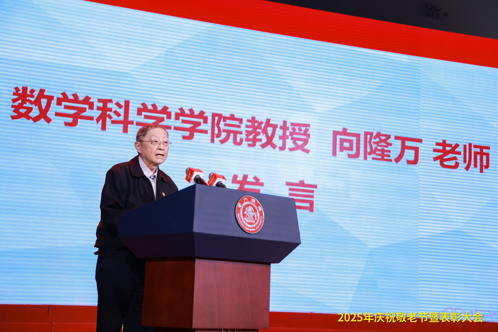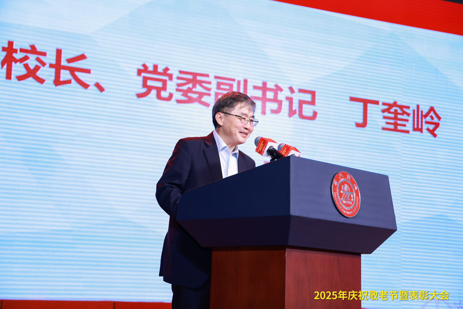 丁奎岭向全校离退休教职工致以诚挚的问候和崇高的敬意,向获奖的离退休先进集体和先进个人表示热烈祝贺,对上海市高校退管会等上级部门对学校离退休工作的指导和支持表示感谢。他表示,今年是“十四五”收官和“十五五”谋划之年,学校坚持第十二次党代会筹备、“十五五”规划编制、纪念建校130周年活动筹备三项全局性工作同谋划、同部署、同推进,进一步深化教育科技人才一体化发展。他围绕人才培养、科学研究、学科与平台建设等方面向老同志们介绍学校改革发展的最新情况,并表示,学校发展的每一步都离不开各位老同志的辛勤耕耘和无私奉献,很多老同志退休后仍不遗余力在立德树人、党建引领、青年教师培养和志愿服务等方面用行动践行交大老同志的担当与奉献,是每一位交大人学习的榜样。他表示,学校将以党的二十届四中全会精神为指引,抓住新一轮科技革命和产业变革历史机遇,全面建设中国特色世界一流大学,希望老同志们继续关心和支持学校的发展,为学校的建设贡献经验和智慧。学校将一如既往做好离退休工作,切实关心照顾好老领导、老同志,不断提升大家的获得感幸福感安全感,用心用情做好服务和保障。
