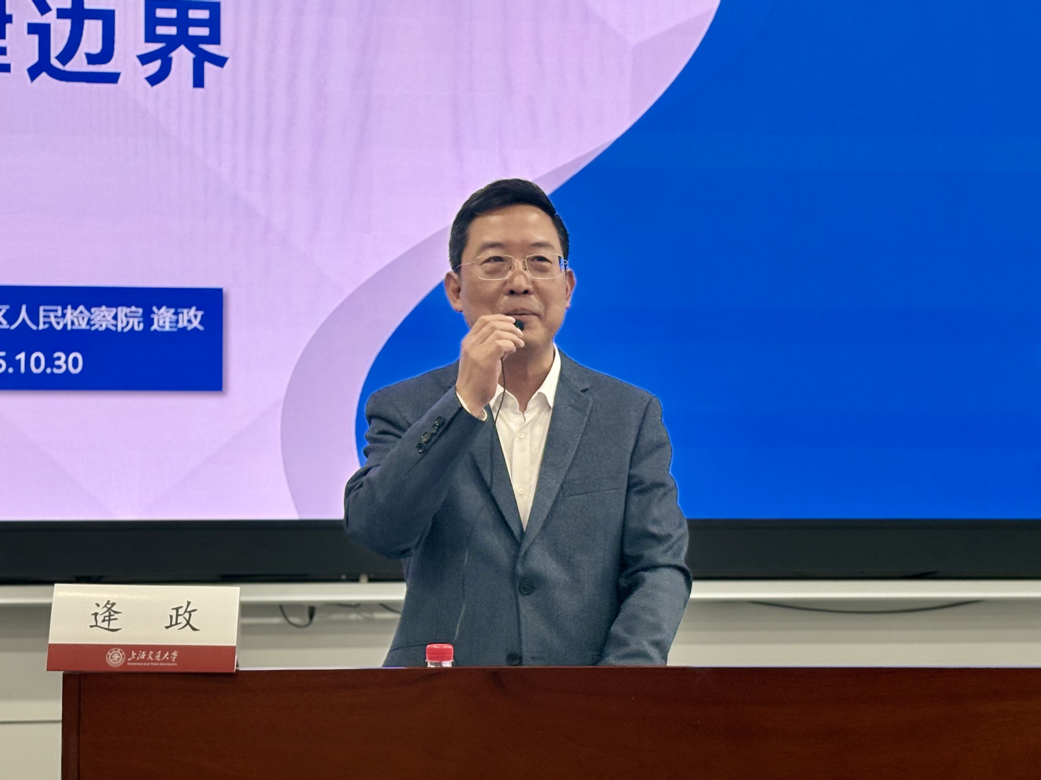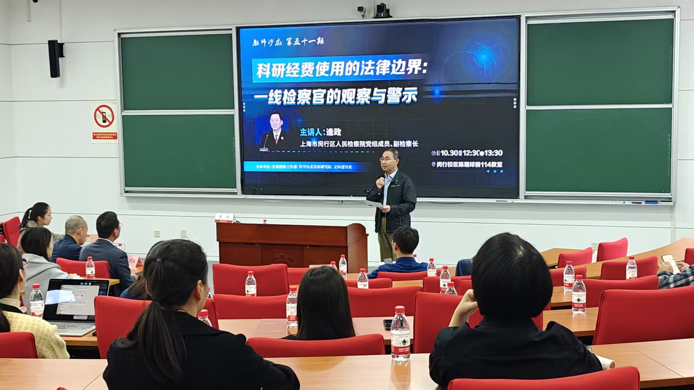10月30日中午,上海市闵行区人民检察院党组成员、副检察长逄政应邀做客上海交通大学第五十一期教师沙龙,就科研经费使用的法律边界问题作专题分享。党委教师工作部常务副部长陈贤峰主持活动。科学技术发展研究院科研质量管理处副处长沈利冰、文科建设处副处长刘钊参加活动。